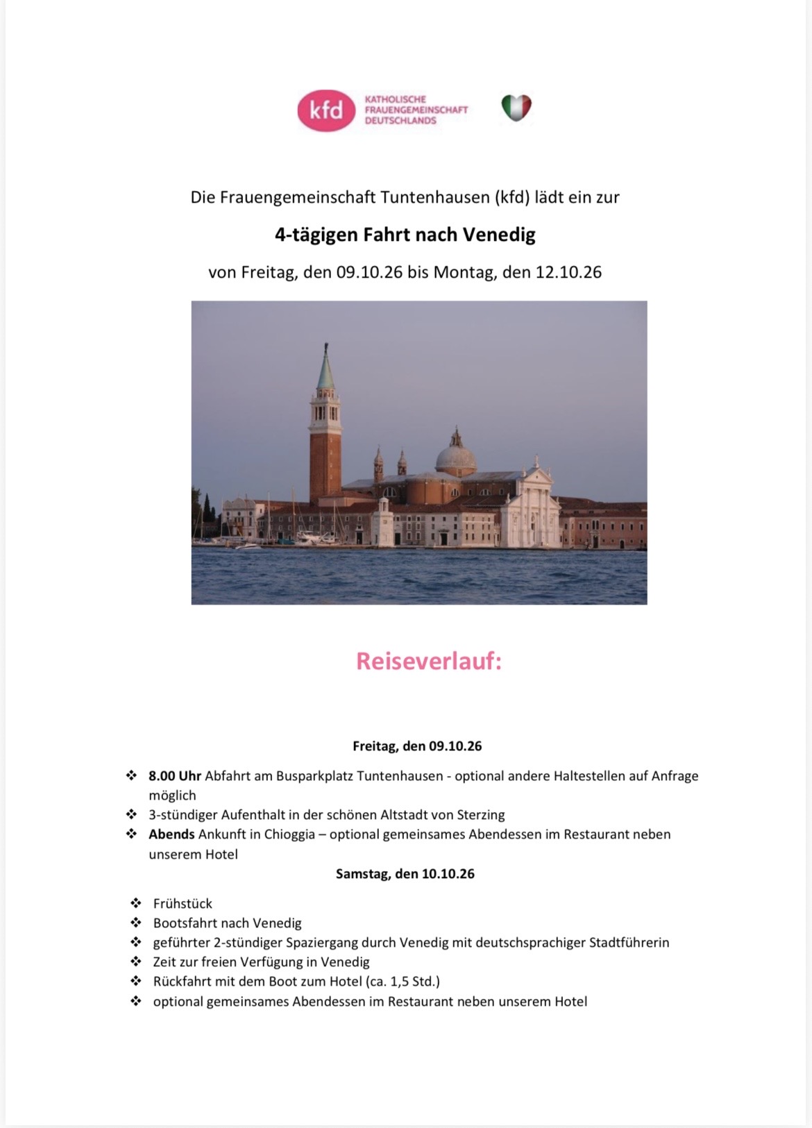 Die nächste Reise geht 2026 im Oktober nach Venedig!